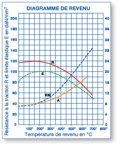 Revenu : A partir de 130 °C selon les duretés et caractéristiques mécaniques recherchées.