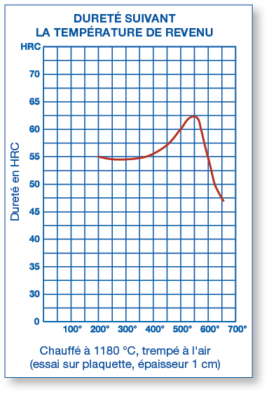 - deuxième revenu entre 550 °C et 650 °C selon les duretés recherchées,