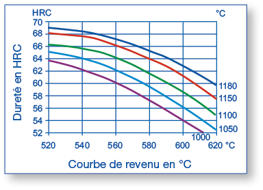 Revenu : 3 revenus successifs à 560 °C compris entre 1 h 00 et 3 h 00 à température selon la taille des pièces.